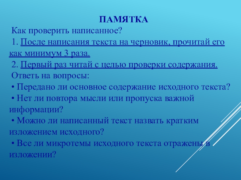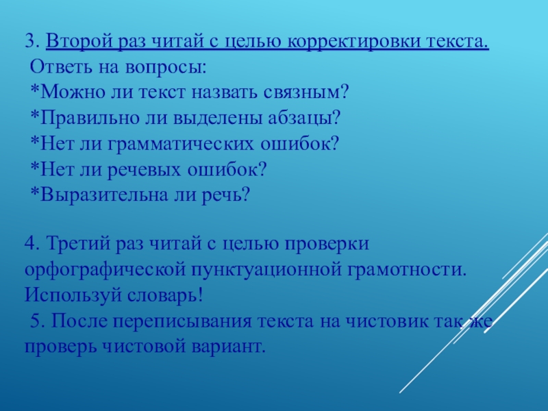 Слайд 353. Второй раз читай с целью корректировки текста.
