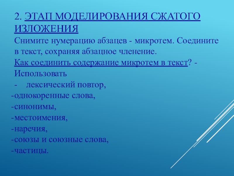 Слайд 122. ЭТАП МОДЕЛИРОВАНИЯ СЖАТОГО ИЗЛОЖЕНИЯ