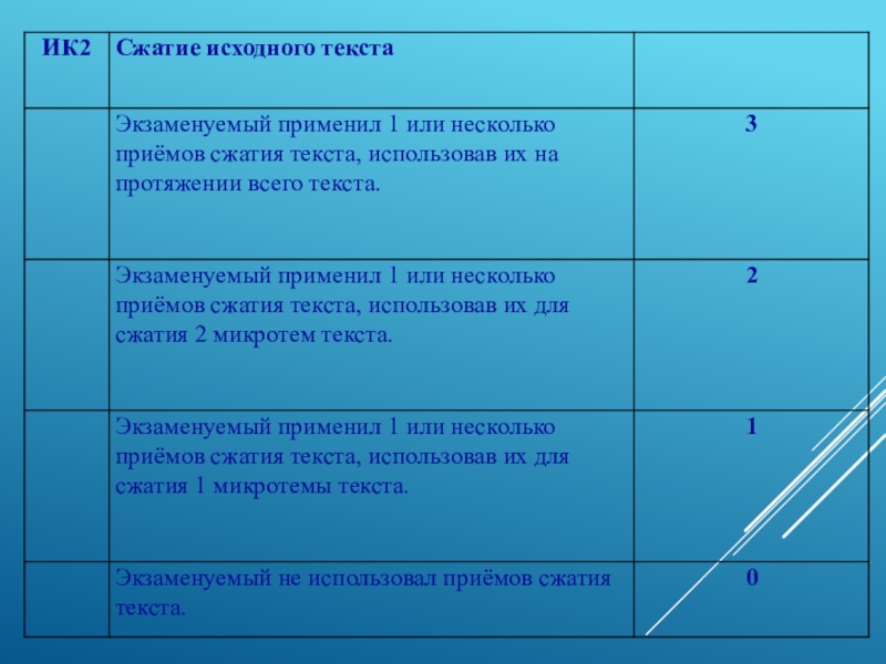 - умение отобрать в исходном тексте основное (относительно частей исходного