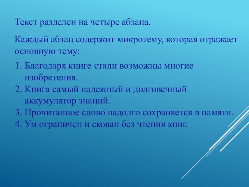 Каждый абзац содержит микротему, которая отражает основную тему: