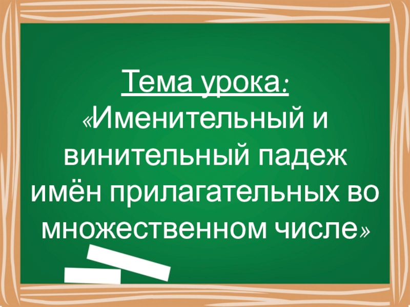 Слайд 3Тема урока: «Именительный и винительный падеж имён прилагательных во множественном числе»