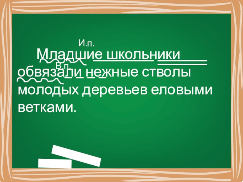 Слайд 2Младшие школьники обвязали нежные стволы молодых деревьев еловыми ветками.