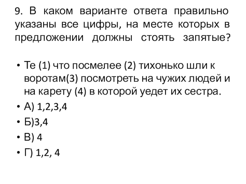 Те (1) что посмелее (2) тихонько шли к воротам(3) посмотреть на чужих людей и на карету (4) в которой уедет их сестра.