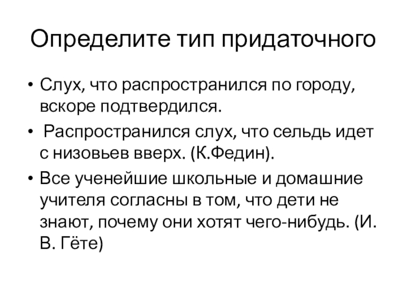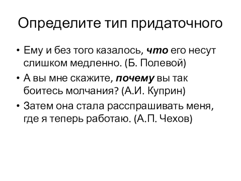 Слайд 9Определите тип придаточного, объясните пунктуацию