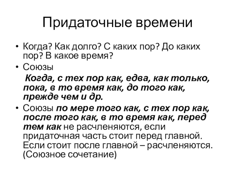 Когда, с тех пор как, едва, как только, пока, в то время как, до того как, прежде чем и др.