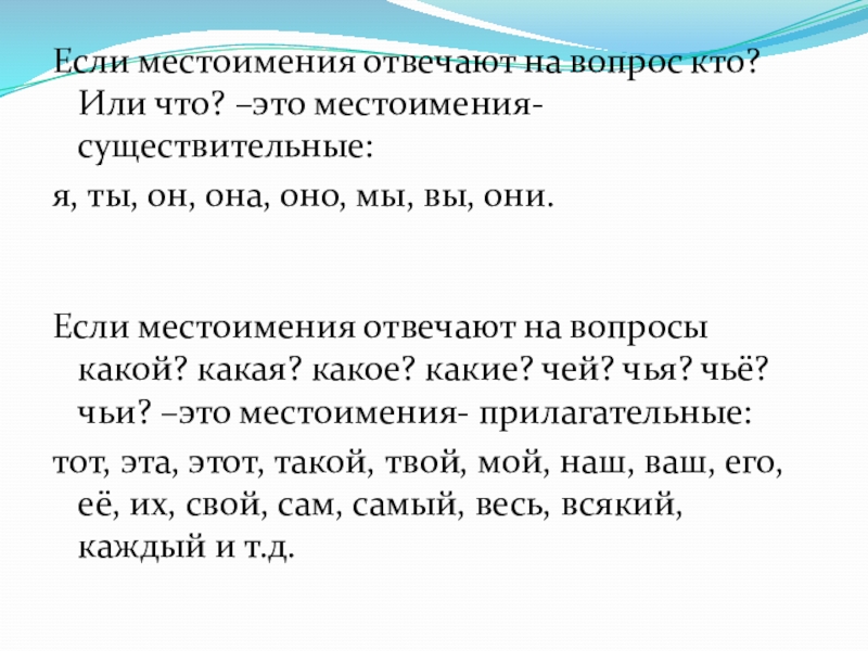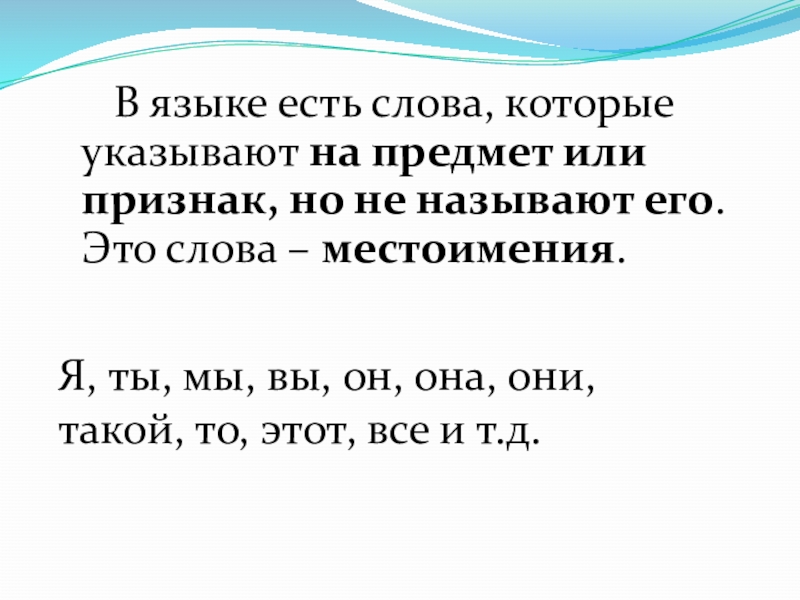 Я, ты, мы, вы, он, она, они, такой, то, этот, все и т.д.