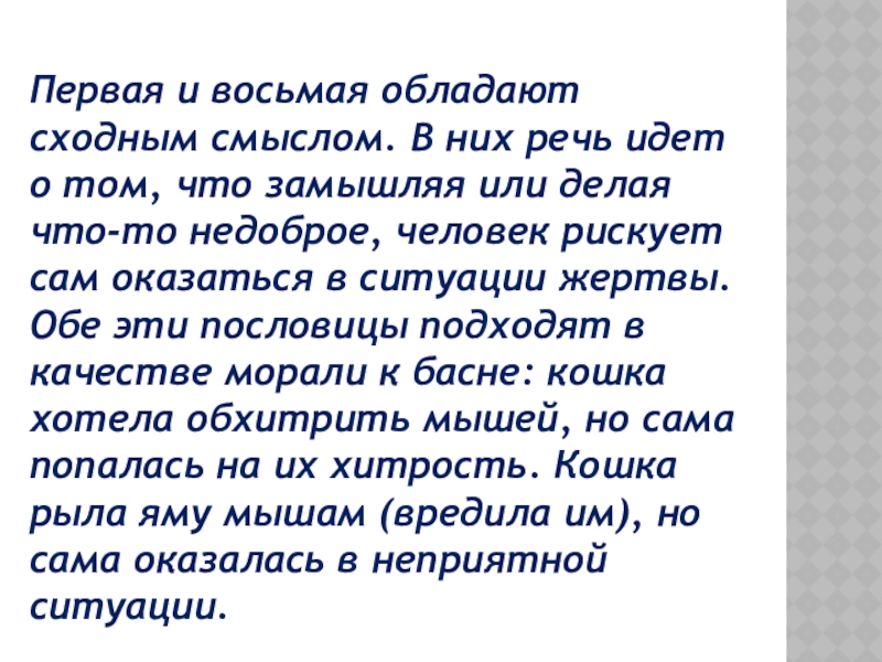 Слайд 14Первая и восьмая обладают сходным смыслом. В них речь идет о