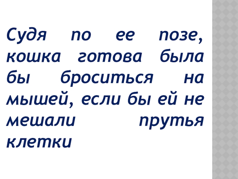 Слайд 11Судя по ее позе, кошка готова была бы броситься на мышей,