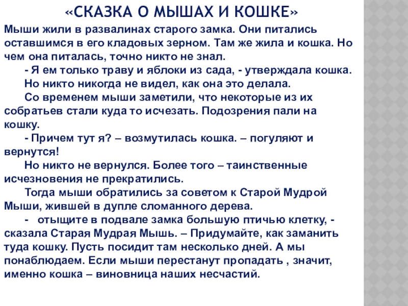 Слайд 5«СКАЗКА О МЫШАХ И КОШКЕ»