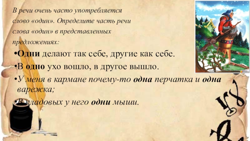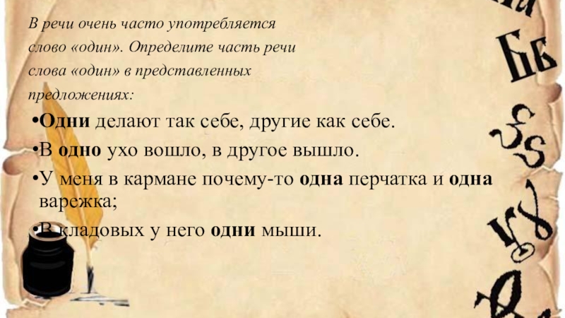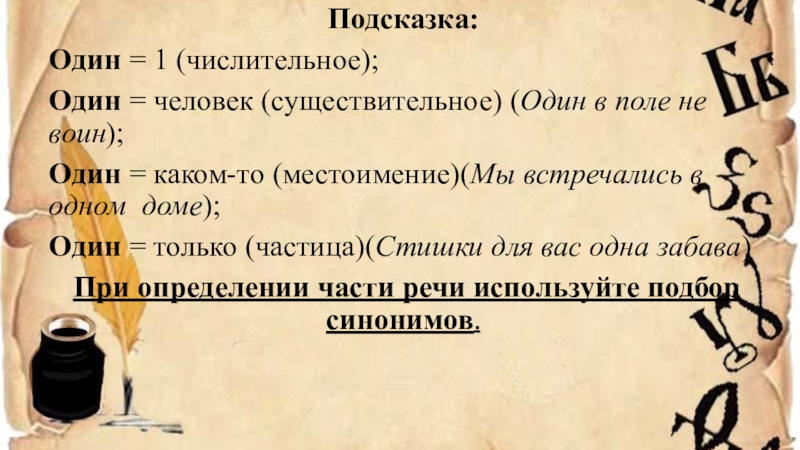 слово «один». Определите часть речи