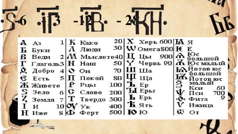 Слайд 312 слов, обозначающих количество: одинъ, два, три, четыре, пять, шесть, семь, осемь,