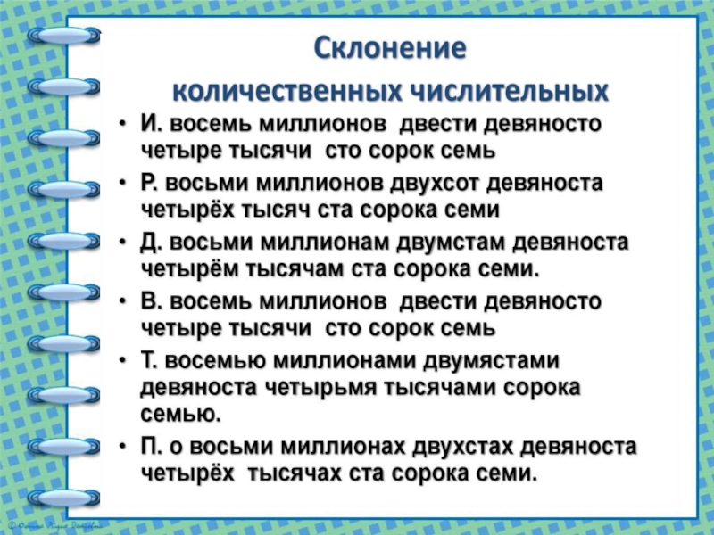 Презентация по русскому языку на тему Склонение количественных числительных (6 класс) Русский язык