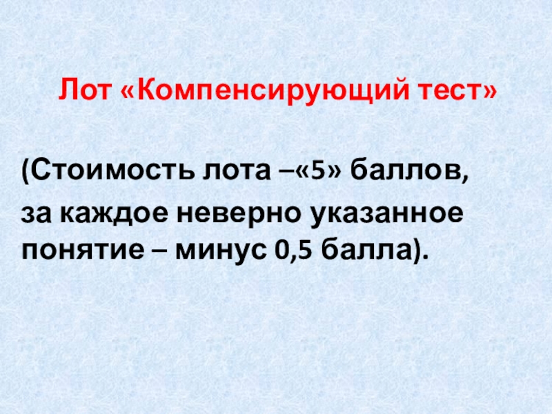 (Стоимость лота –«5» баллов, за каждое неверно указанное понятие – минус 0,5 балла).