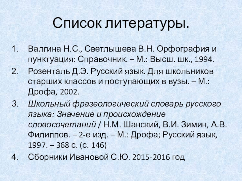 Розенталь Д.Э. Русский язык. Для школьников старших классов и поступающих в вузы. – М.: Дрофа, 2002.
