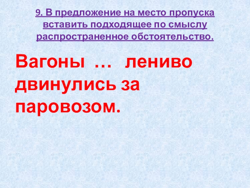 Слайд 469. В предложение на место пропуска вставить подходящее по смыслу распространенное