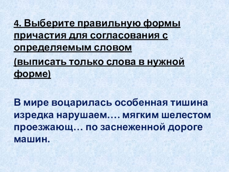 Слайд 184. Выберите правильную формы причастия для согласования с определяемым словом