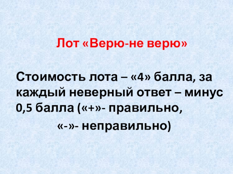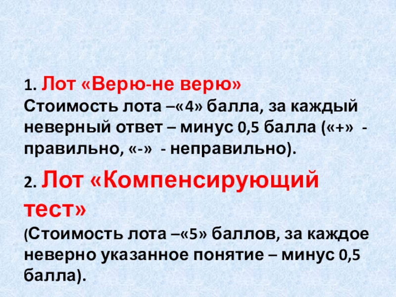 (Самостоятельно оценив уровень подготовки к опросу по теории, обучающийся имеет право выбрать лот определенной «стоимости»)