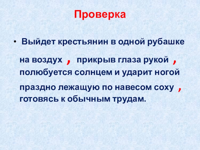 Выйдет крестьянин в одной рубашке на воздух прикрыв глаза рукой полюбуется солнцем и ударит ногой праздно лежащую по навесом соху готовясь к обычным трудам.