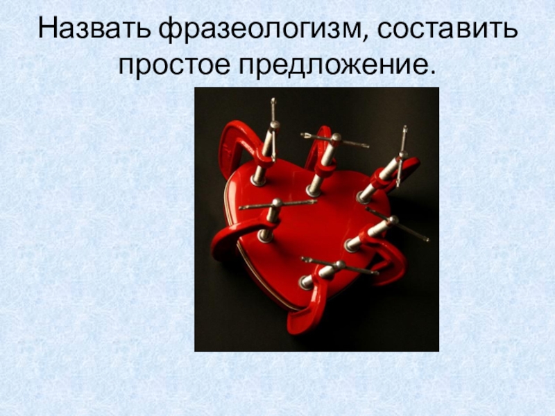 Слайд 32Назвать фразеологизм, составить простое предложение.