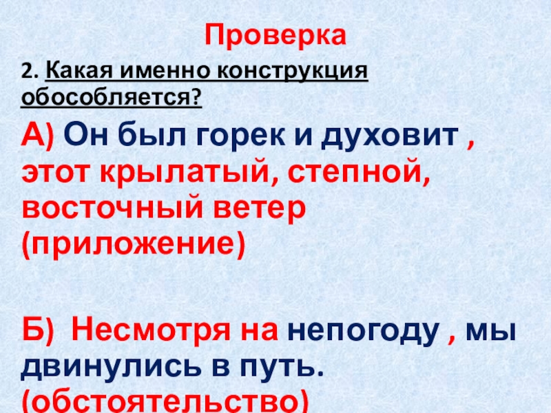2. Какая именно конструкция обособляется? (ответ одним словом)