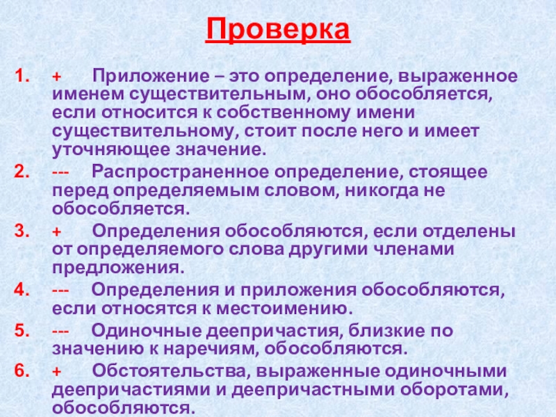 Слайд 6Приложение – это определение, выраженное именем существительным, оно обособляется, если относится