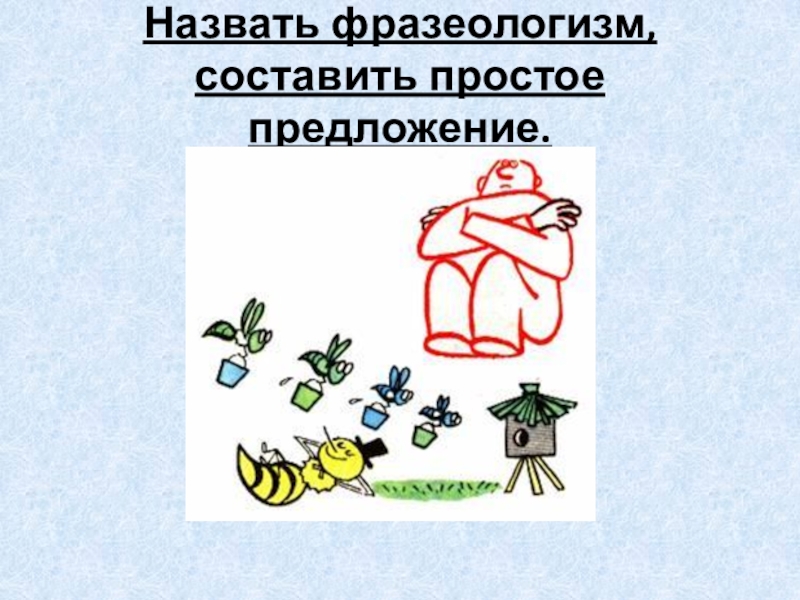 Слайд 34Назвать фразеологизм, составить простое предложение.