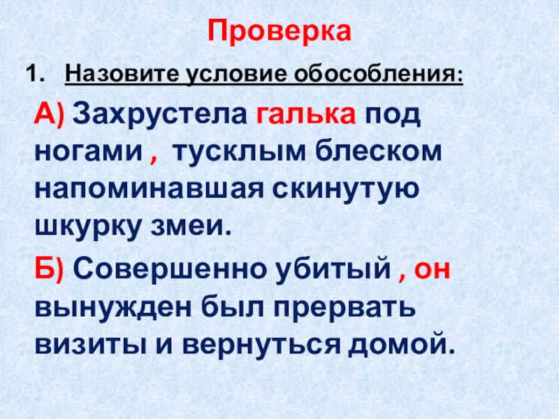 Б) Совершенно убитый , он вынужден был прервать визиты и вернуться домой.