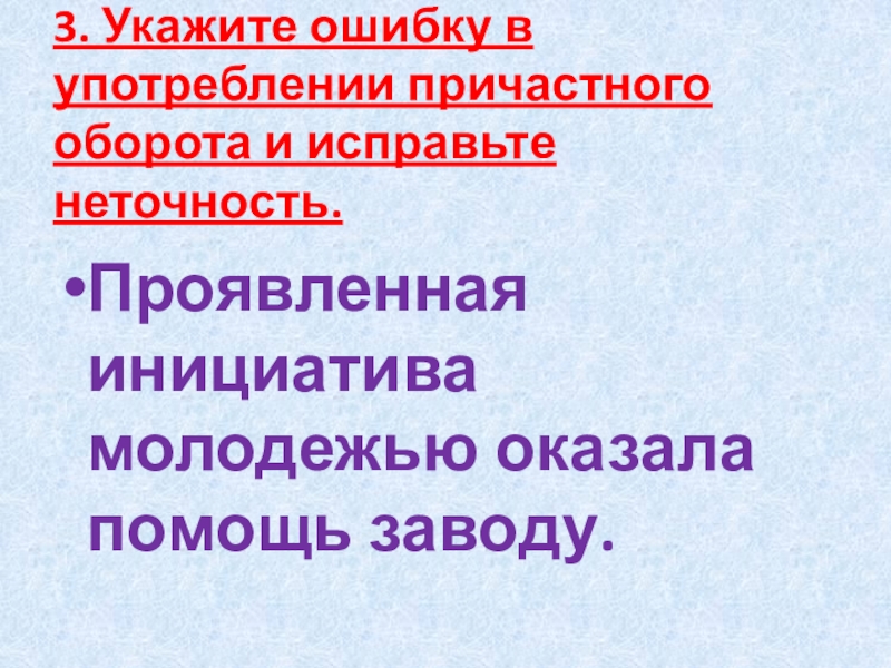 3. Укажите ошибку в употреблении причастного оборота и исправьте неточность.