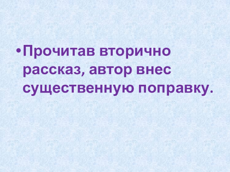 Слайд 25Прочитав вторично рассказ, автор внес существенную поправку.