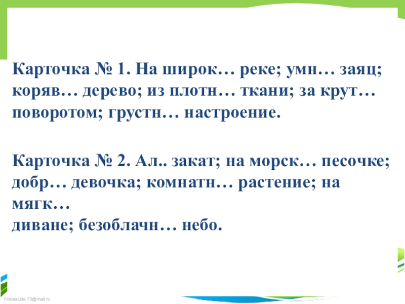 Карточка № 2. Ал.. закат; на морск… песочке; добр… девочка; комнатн… растение; на мягк…