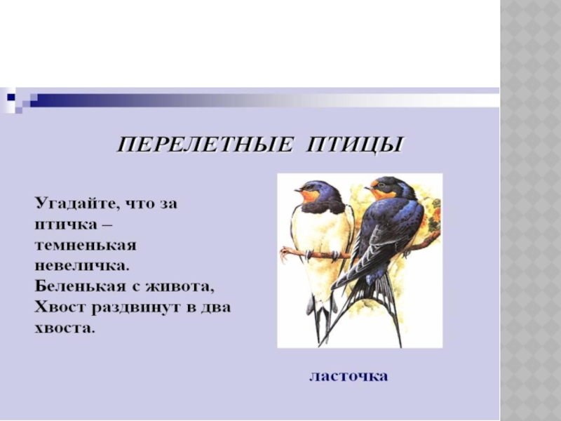 Презентация, доклад по русскому языку на тему почему у ласточки хвост рожками