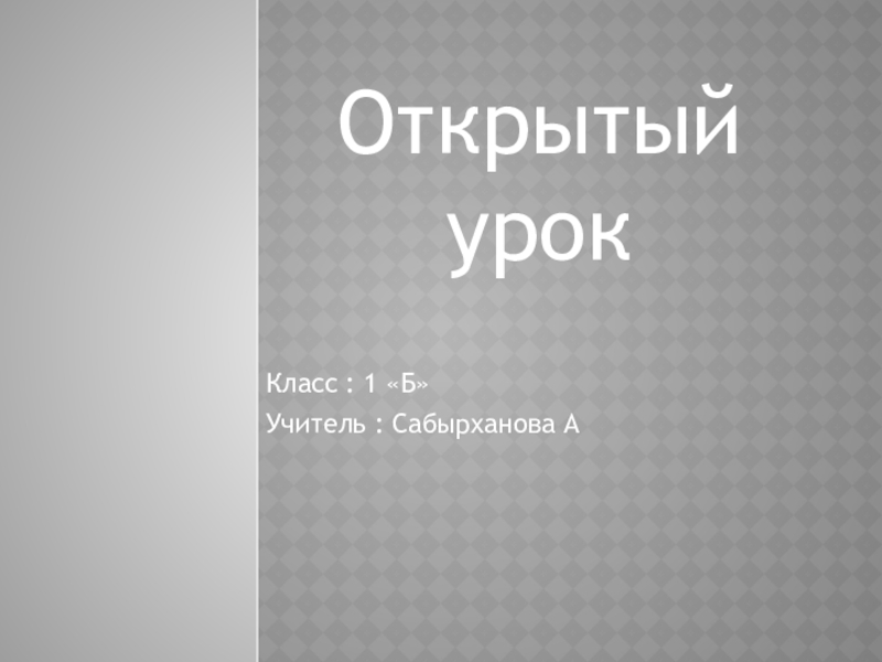 Открытый урокКласс : 1 «Б»Учитель : Сабырханова А