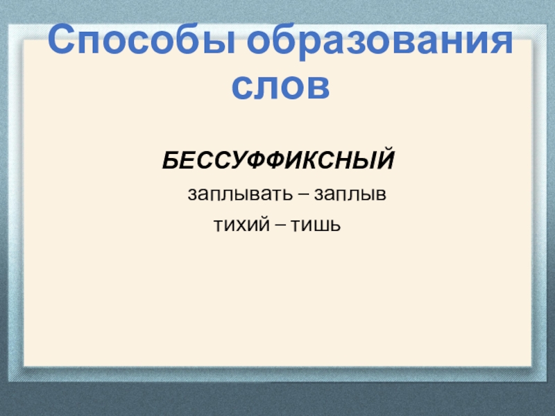 Способы образования словБЕССУФФИКСНЫЙ   заплывать – заплывтихий – тишь