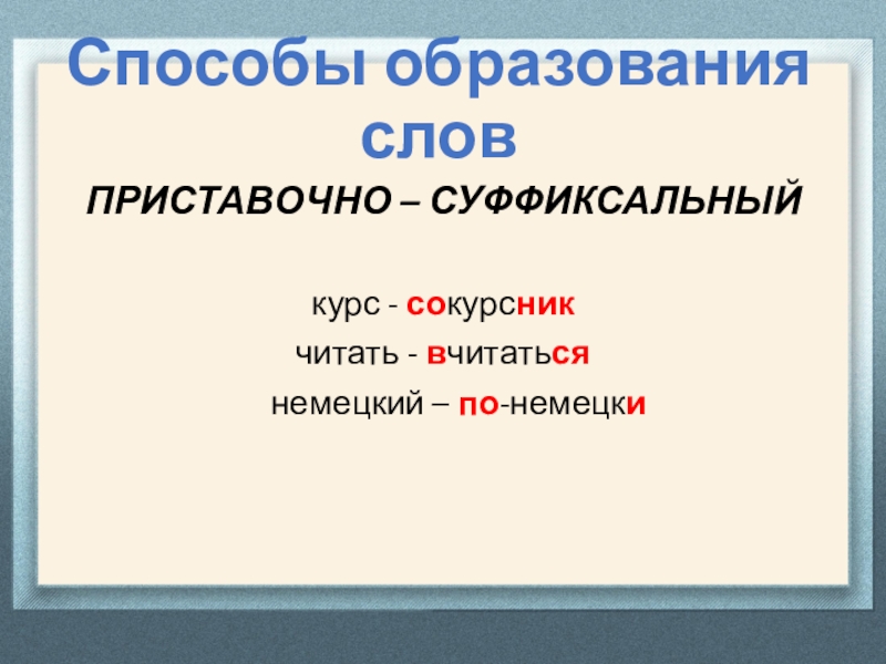 ПРИСТАВОЧНО – СУФФИКСАЛЬНЫЙ