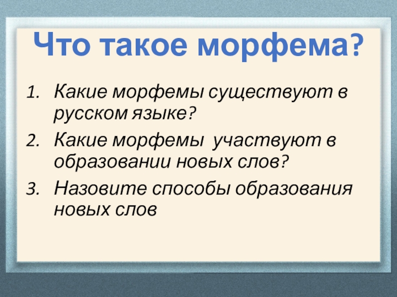 Что такое морфема?Какие морфемы существуют в русском языке?Какие морфемы участвуют в образовании новых слов?Назовите способы образования новых