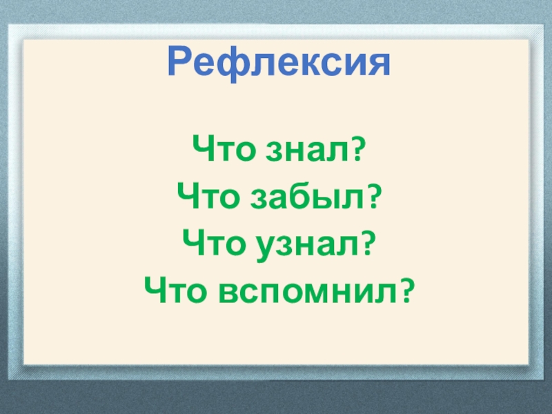 РефлексияЧто знал?Что забыл?Что узнал?Что вспомнил?