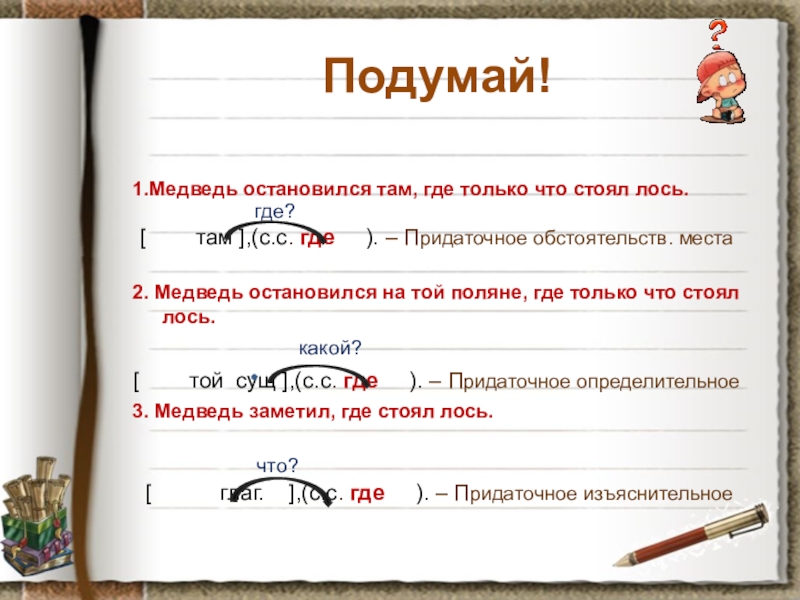 [ глаг. ],(с.с. где ). – Придаточное изъяснительное