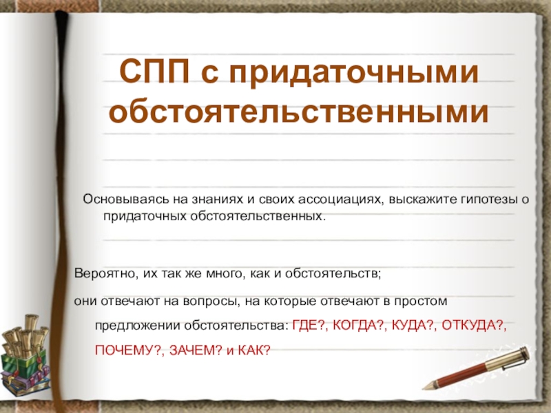 Основываясь на знаниях и своих ассоциациях, выскажите гипотезы о придаточных обстоятельственных.