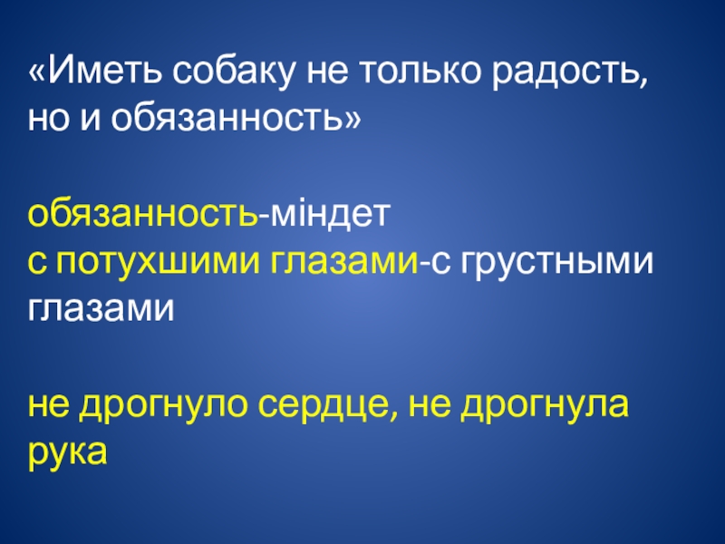 Слайд 3«Иметь собаку не только радость, но и обязанность» обязанность-міндет с потухшими глазами-с грустными