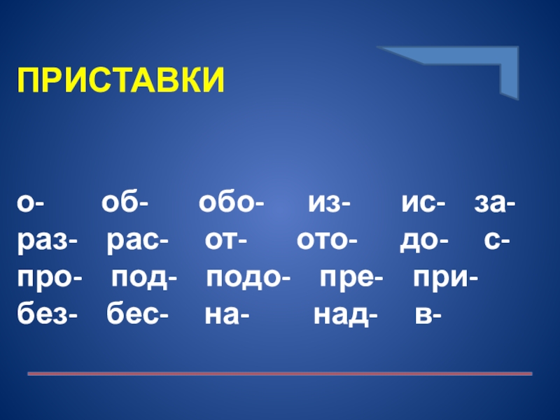 ПРИСТАВКИ о- об- обо- из- ис- за- раз- рас- от- ото- до-