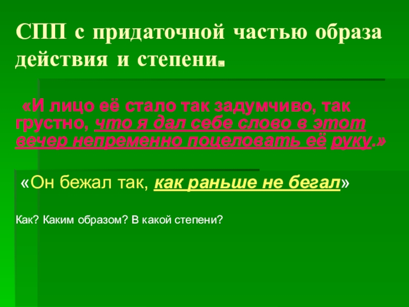 Слайд 19СПП с придаточной частью образа действия и степени.