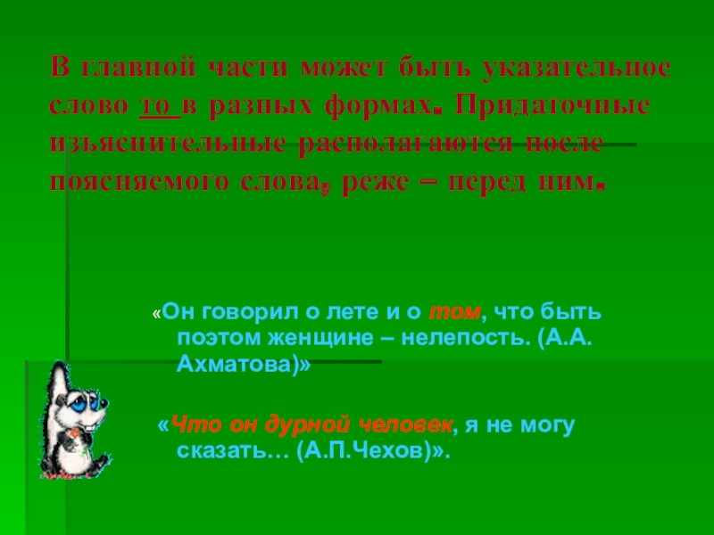 Слайд 14В главной части может быть указательное слово то в разных формах.