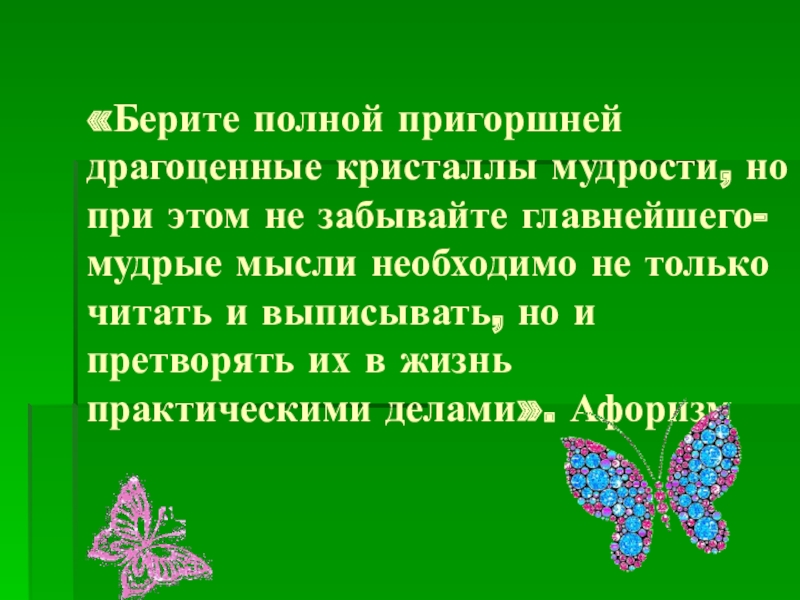 Слайд 2«Берите полной пригоршней драгоценные кристаллы мудрости, но при этом не забывайте