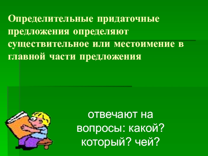 Слайд 4Определительные придаточные предложения определяют существительное или местоимение в главной части предложения