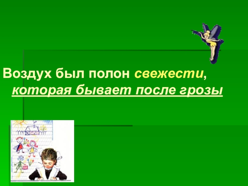 Слайд 5Воздух был полон свежести, которая бывает после грозы