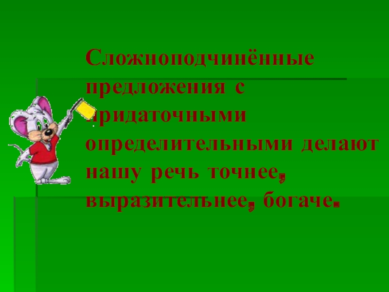 Слайд 9Сложноподчинённые предложения с придаточными определительными делают нашу речь точнее, выразительнее, богаче.