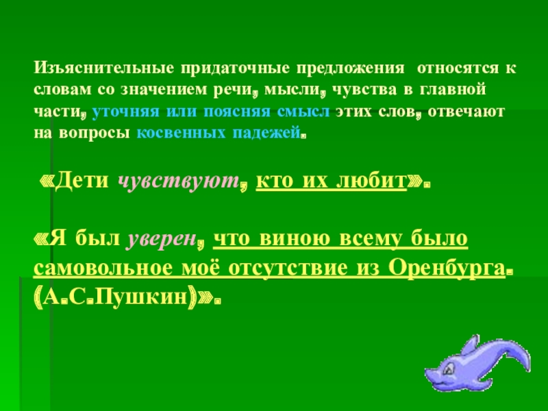 Слайд 12Изъяснительные придаточные предложения относятся к словам со значением речи, мысли, чувства