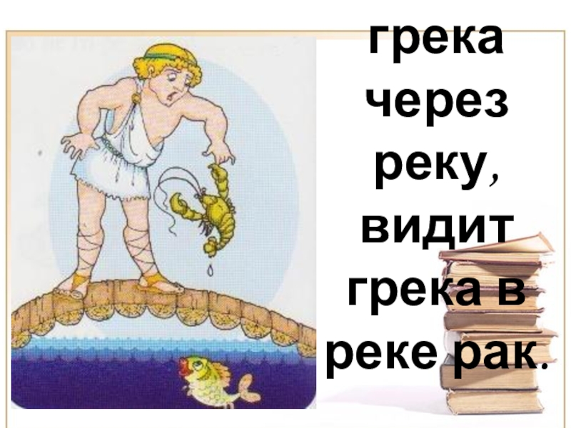 Слайд 6Ехал грека через реку, видит грека в реке рак.