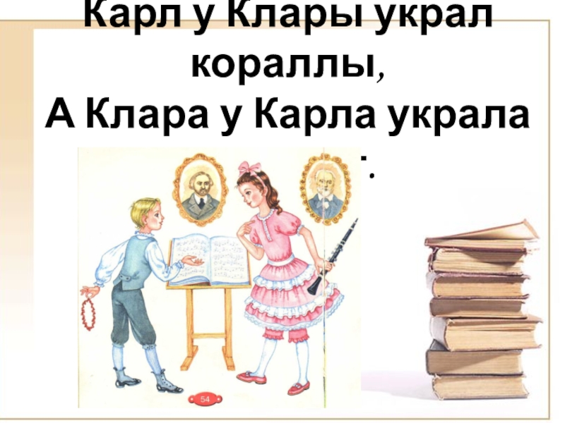 Слайд 4Карл у Клары украл кораллы, А Клара у Карла украла кларнет.
