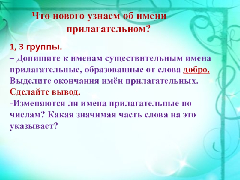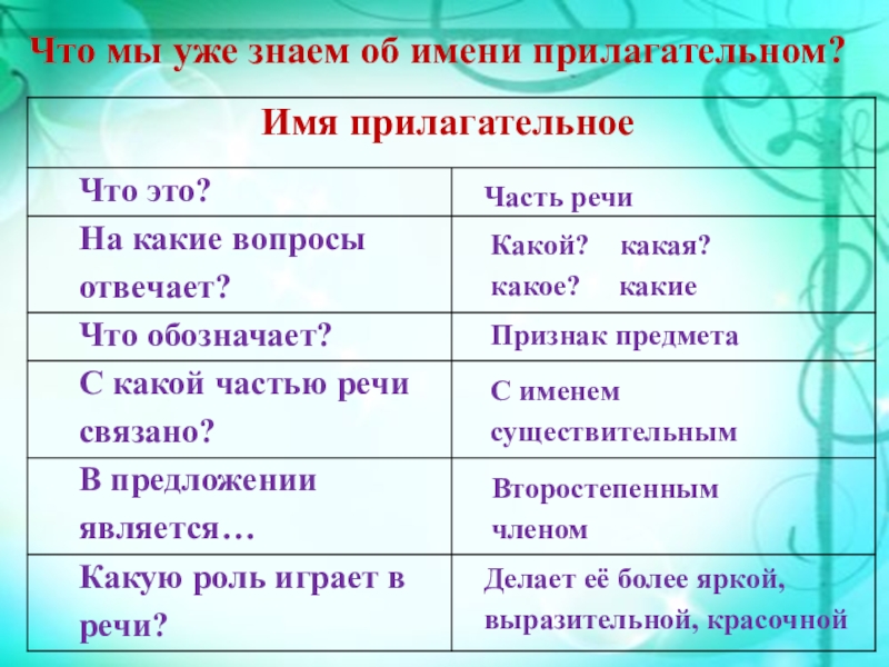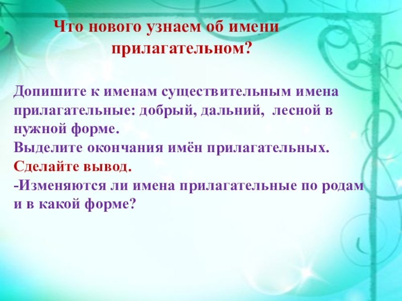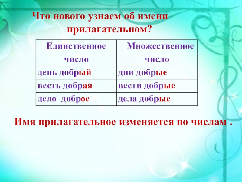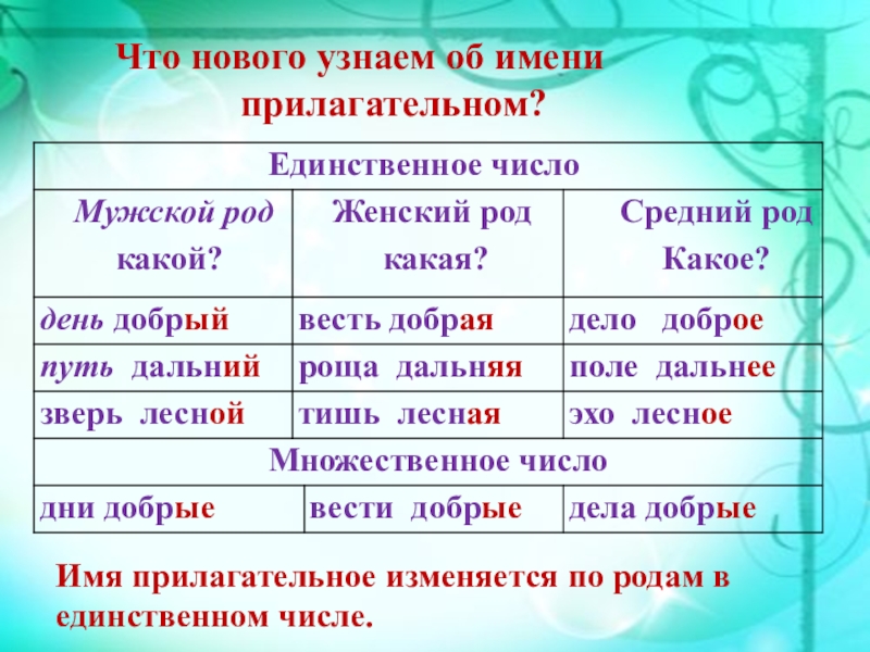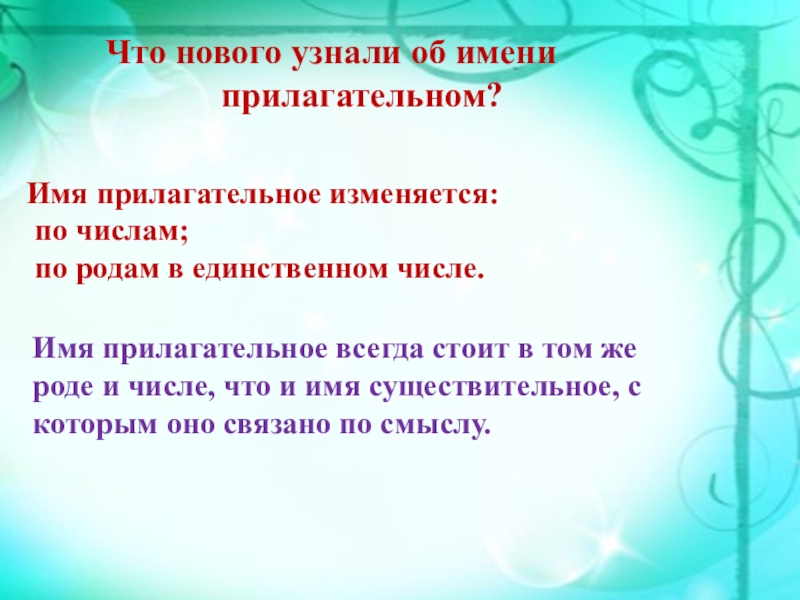 Имя прилагательное всегда стоит в том же роде и числе, что и имя существительное, с которым оно связано по смыслу.